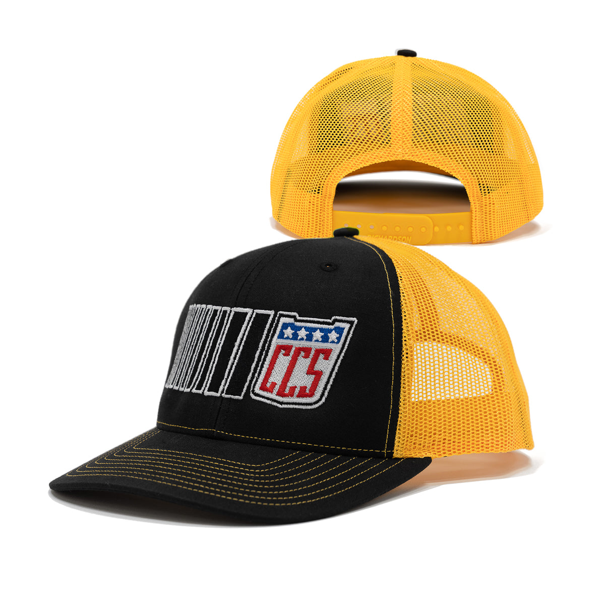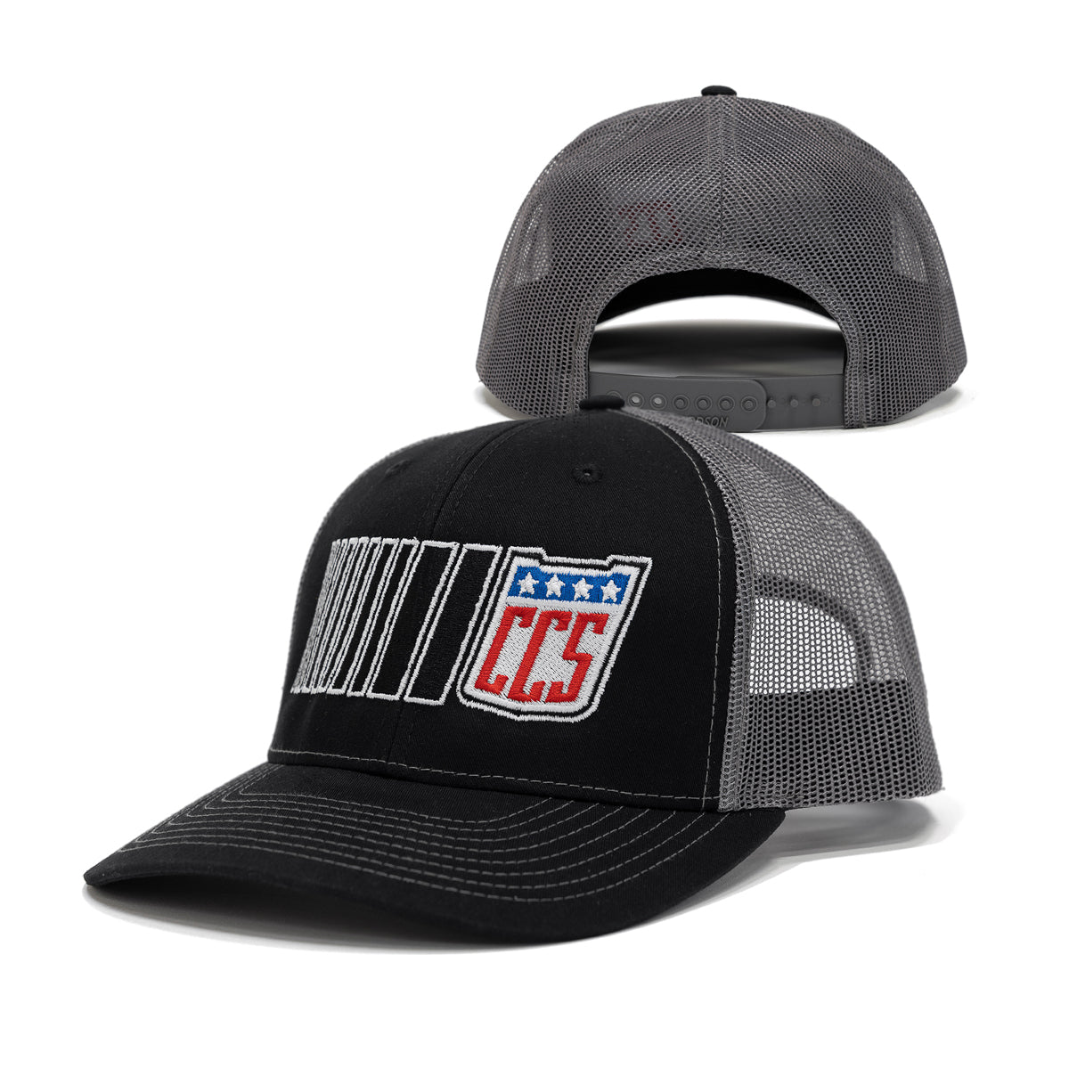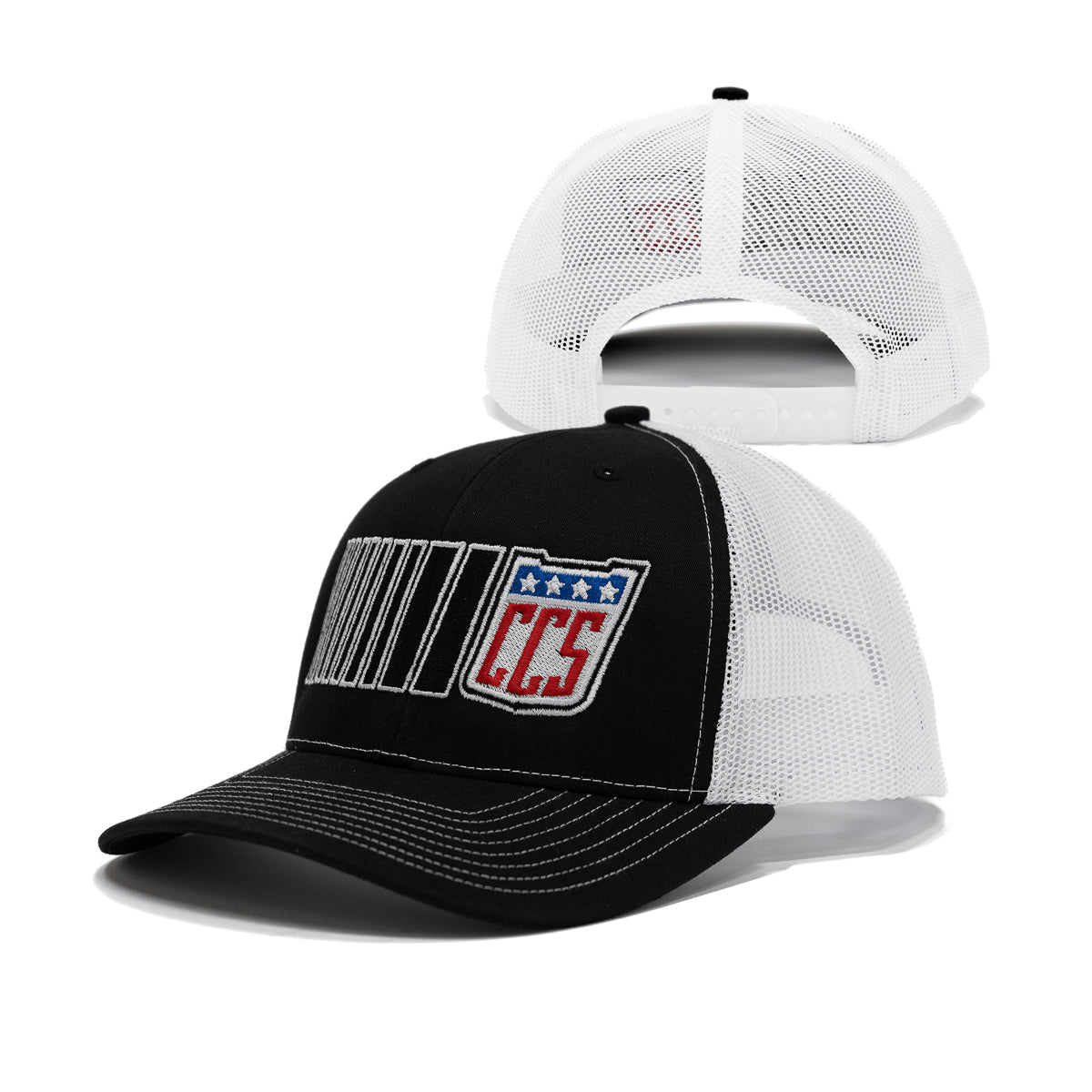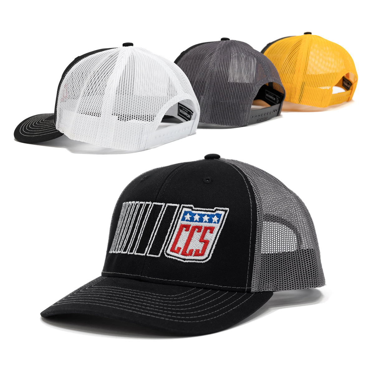 Mesh, snap-back trucker-style cap with embroidered AAR-style logo on the front. These hats are Richardson Original 112 Adjustable Trucker hats.